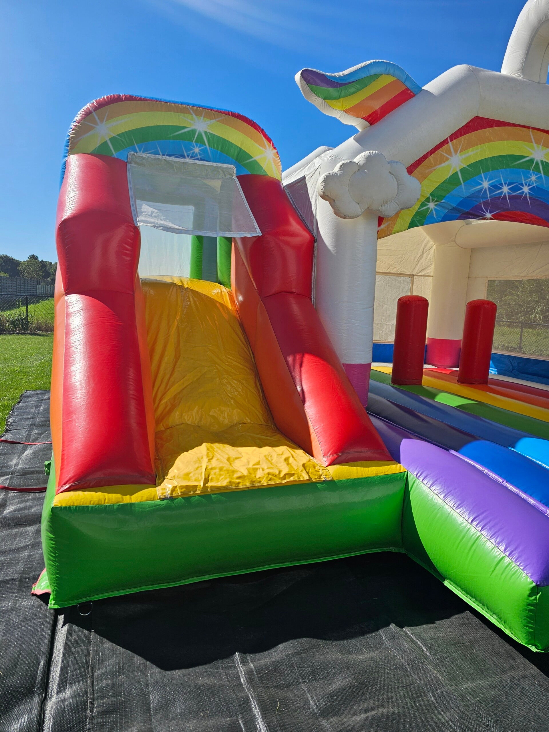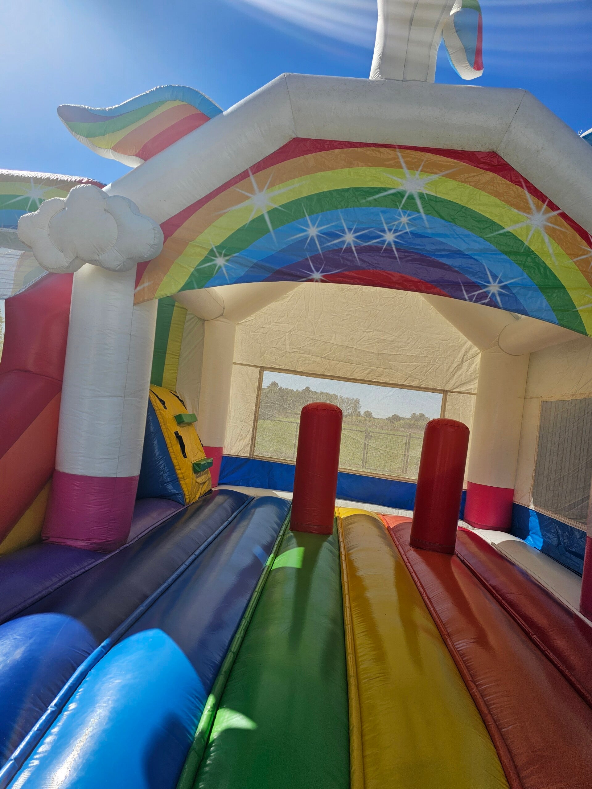 Willkommen in der zauberhaften Welt der Einhörner! Diese farbenfrohe Slide-Combo-Hüpfburg lädt Kinder zum fröhlichen Springen und Rutschen ein – ein echtes Highlight auf jedem Fest. Mit ihren liebevoll gestalteten 3D-Figuren und kinderfreundlichen Animationen zieht sie alle Blicke auf sich und sorgt für leuchtende Kinderaugen.