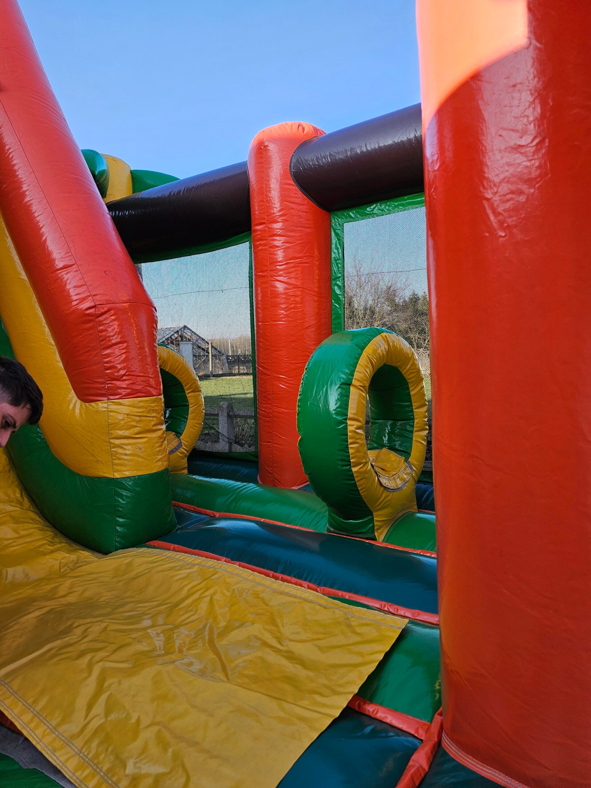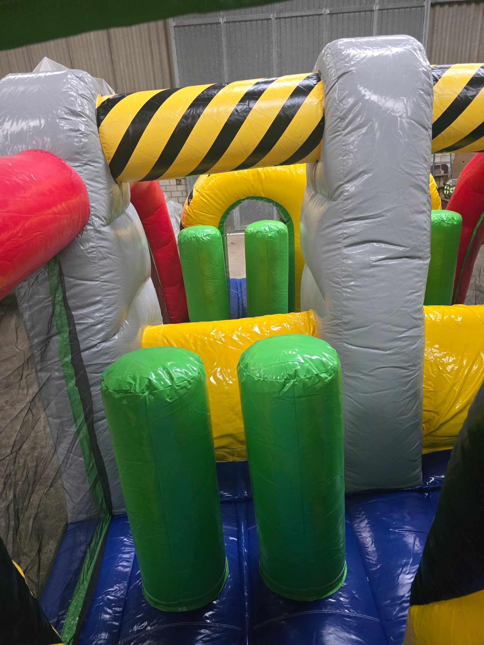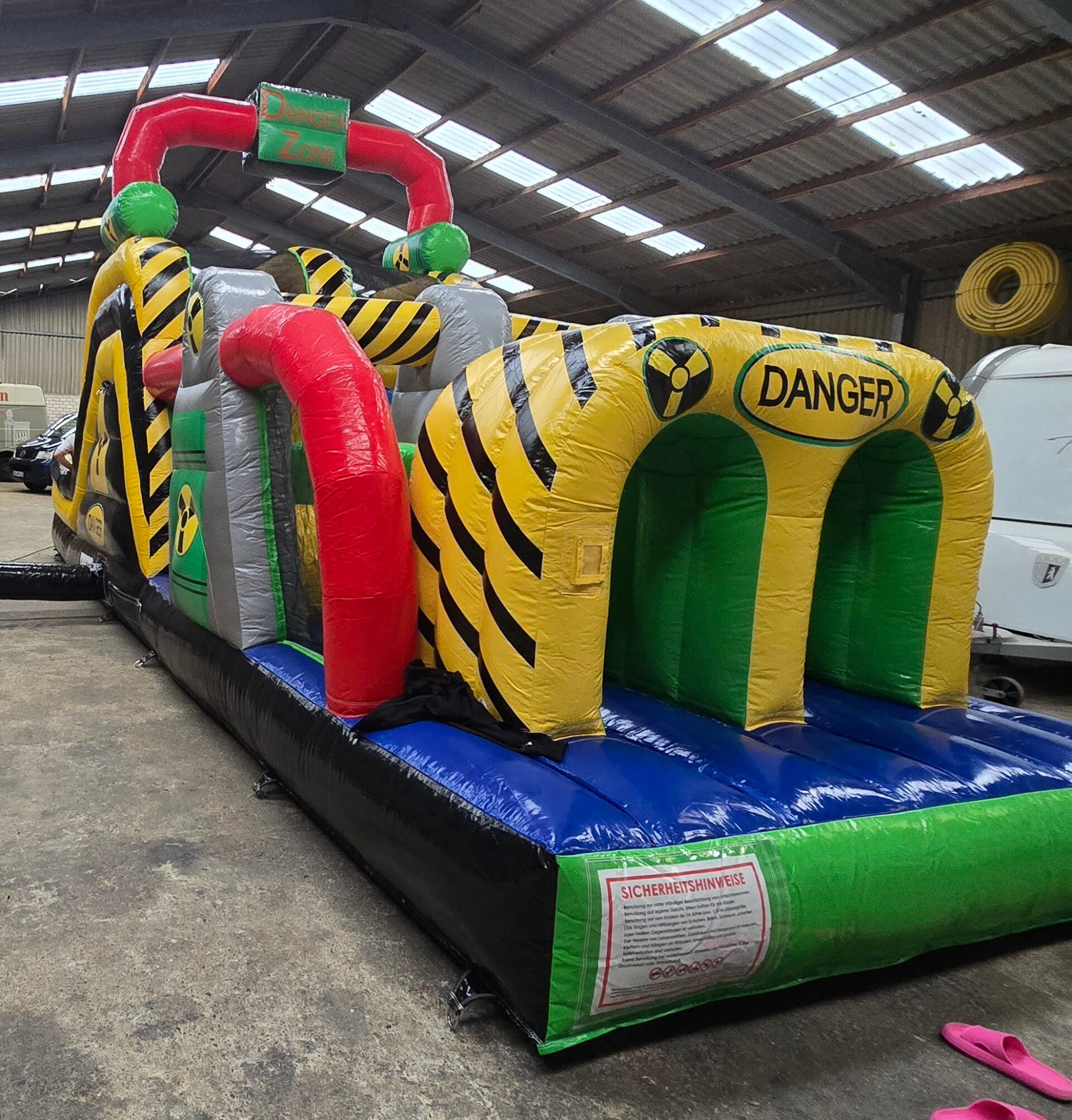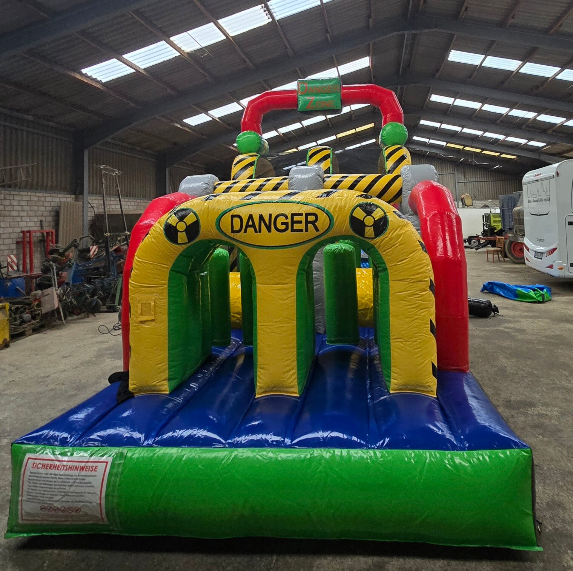 Unser aufblasbarer Hindernisparcours „DangerZone“ ist das Highlight jedes Events und sorgt für jede Menge Action und Spaß! Mit zahlreichen spannenden Herausforderungen fördert der Parcours spielerisch die körperliche Beweglichkeit und Koordination der Kinder. Dank des Sicherheitsnetzes über der Rutsche können die kleinen Abenteurer ohne Sorgen ihre grenzenlose Freude erleben.