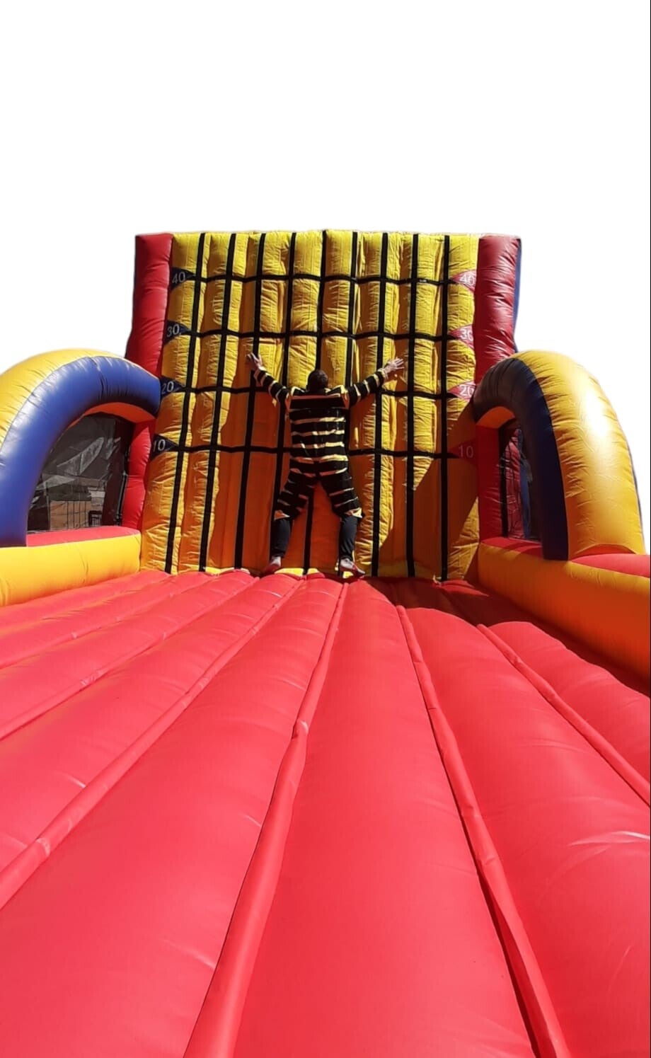 Erleben Sie den ultimativen Spaß mit unserer einzigartigen Kletzwand! Ausgestattet mit einem speziellen Anzug mit Klettverschluss, können sowohl Kinder als auch Erwachsene an die Wand springen und so hoch wie möglich kleben bleiben.